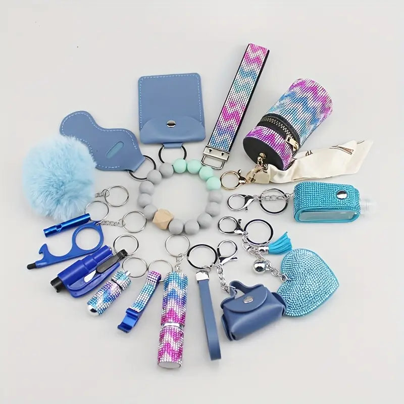 Ce lot complet de 15 pièces est conçu pour accompagner et protéger les femmes au quotidien. Il inclut 1 dragonne, un pack de rouge à lèvres, 1 flacon de désinfectant pour les mains, des décorations, un porte-carte, un flacon de parfum, un pilulier, un bâton de rouge à lèvres, une boule de poils, un dispositif de broyage, un ouvre-porte, un ouvre-bouteille, un sifflet, un sac pour AIRPOD . Chaque élément vous offre praticité et sécurité pour mieux organiser et vivre vos journées avec sérénité.