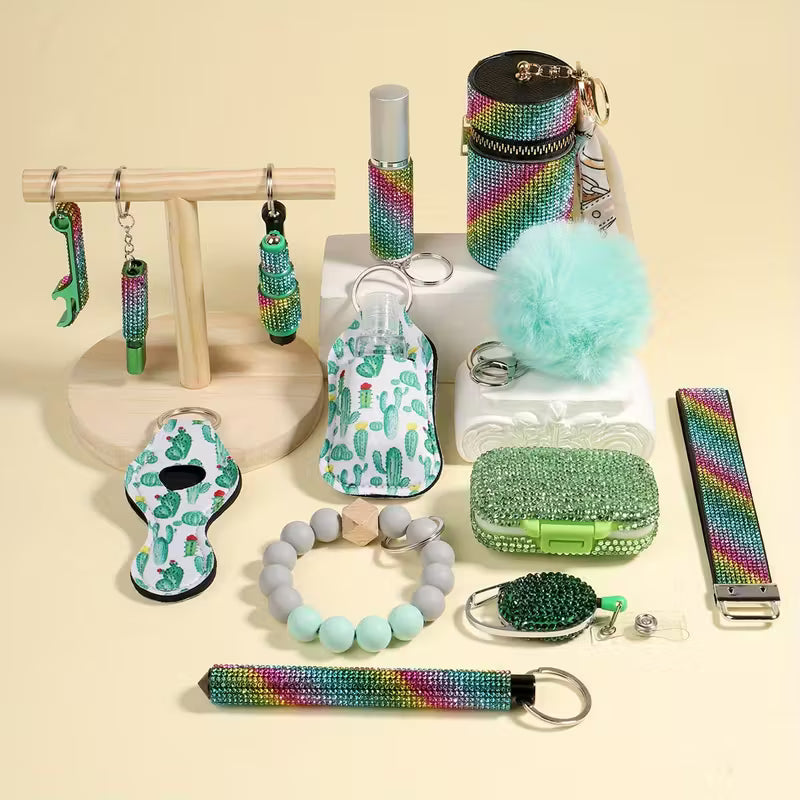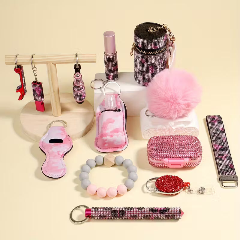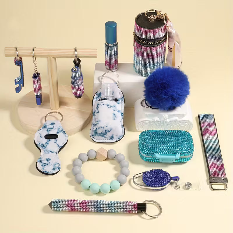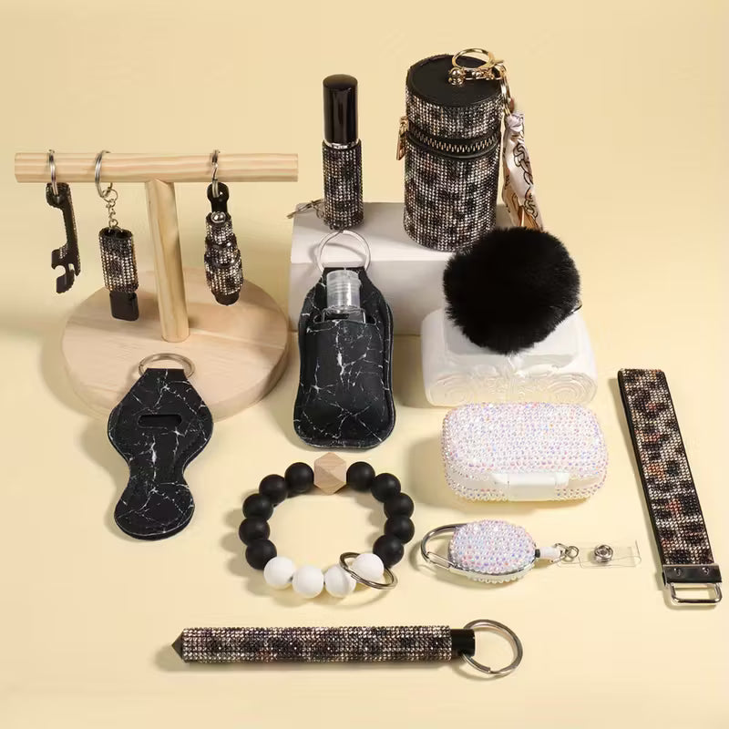 Ce lot complet de 13 pièces associe praticité et sécurité pour accompagner les femmes au quotidien. Avec des accessoires essentiels comme un porte-carte, un flacon de désinfectant, un rouge à lèvres, un sifflet et un ouvre-porte, il permet d’organiser efficacement vos affaires tout en protégeant votre bien-être. Léger et facile à transporter, ce porte-clés vous offre une tranquillité d’esprit précieuse, pour vivre vos journées en toute sérénité.